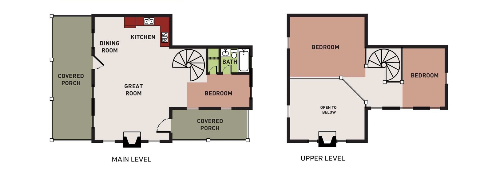 This well-designed cabin kit features an open-concept great room that seamlessly connects the living area, kitchen, and dining space—ideal for entertaining, family living, or enjoying the log cabin lifestyle. The private primary suite includes a full en-suite bathroom, while two additional bedrooms share a second full bath, making this log cabin kit an excellent option for full-time homes, vacation properties, luxury retreats, or short-term rentals.