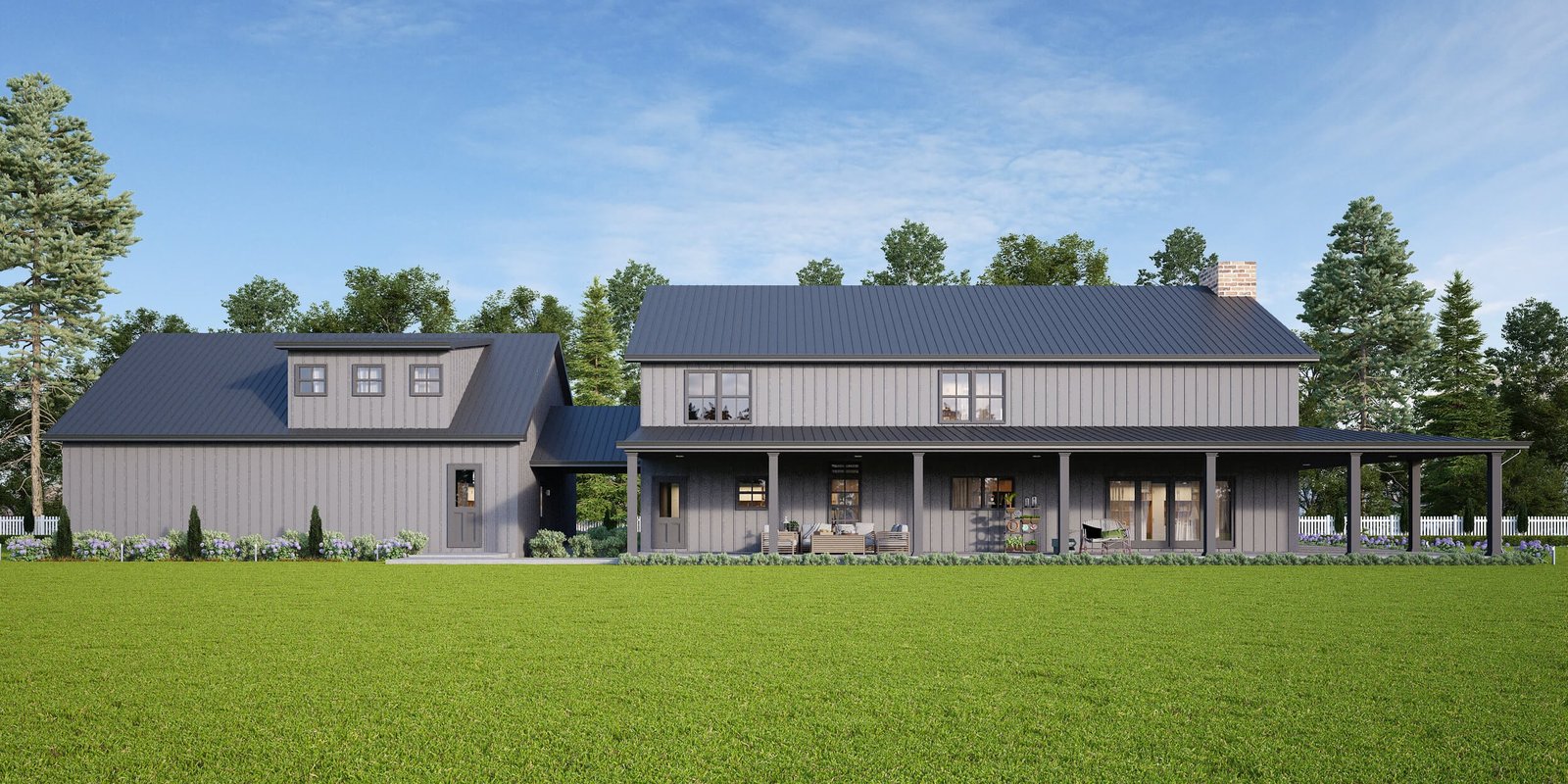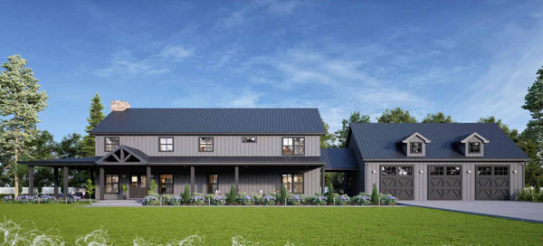 The Grey Haven is a sprawling steel-framed estate built for those who need serious space without sacrificing elegance. With 4,751 sq ft of finished living area, a bonus room, nearly 2,600 sq ft of porch space, and a 3-car garage, this model is the ultimate blend of strength, luxury, and versatility.