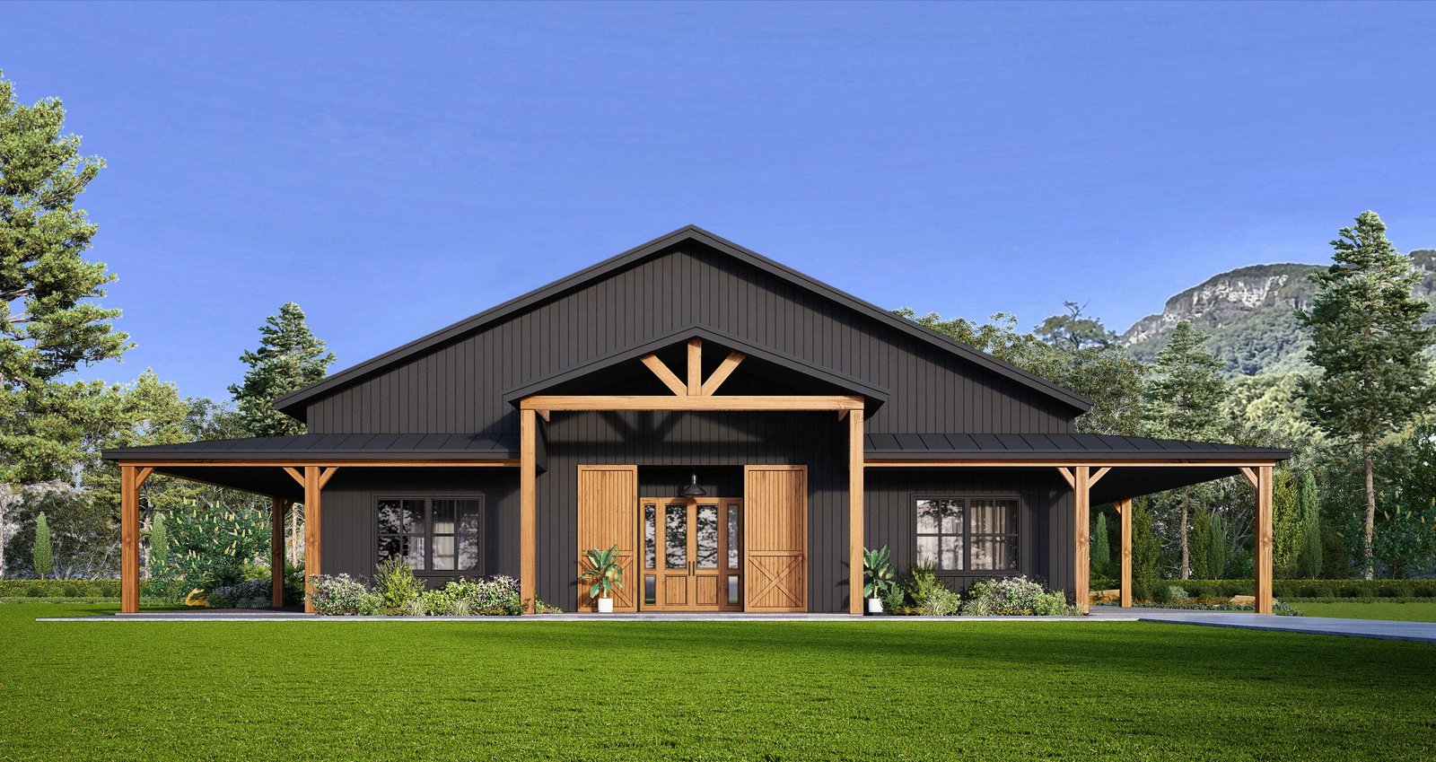 The Stonemont Steel Barndo House Kit is a stylish single-level home designed for efficient living without sacrificing comfort or elegance. With 2,208 sq. ft. of finished interior space, 3 bedrooms, 2 bathrooms, and over 1,100 sq. ft. of porch area, this layout offers room to stretch out while maintaining a practical, budget-conscious footprint. Its clean rooflines, vaulted ceilings, and steel-framed durability make it an ideal choice for modern homesteaders, retirees, or rural retreats.