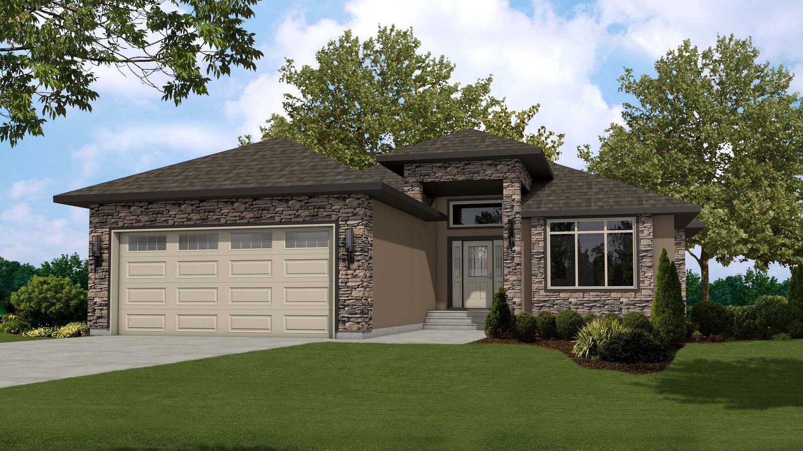 The Whispering Pines Bungalow offers 1,540 sq ft of living space with 3 bedrooms, 2 bathrooms, and a 2-car attached garage. This charming bungalow combines practical design with comfort, featuring a spacious floor plan perfect for families. The large windows and open layout make it a bright and welcoming home for modern living.